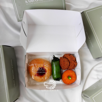 Rp 24.000Paket Snack Box dengan isian Roti Keju, Pastel dan Ongol – Ongol